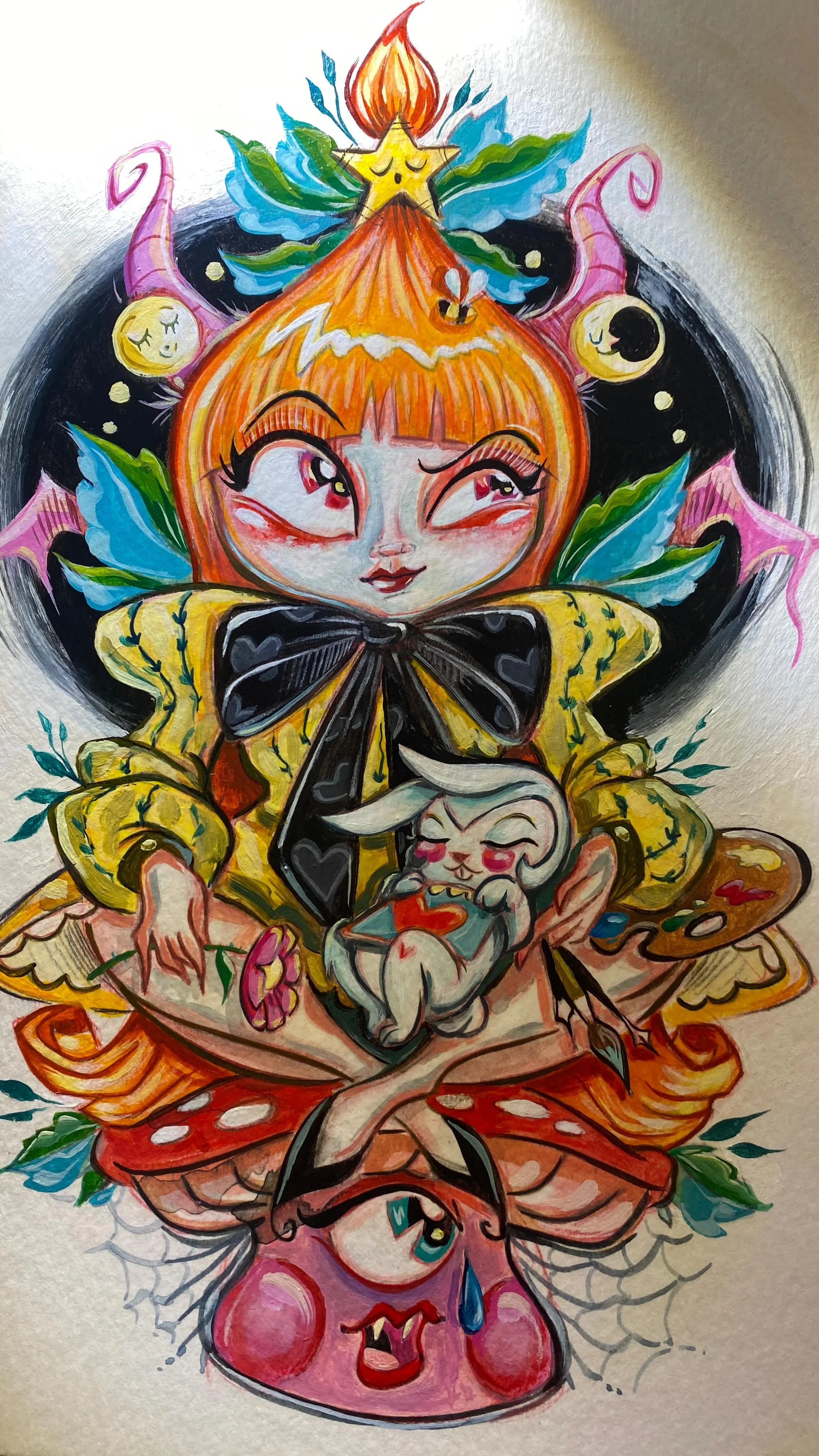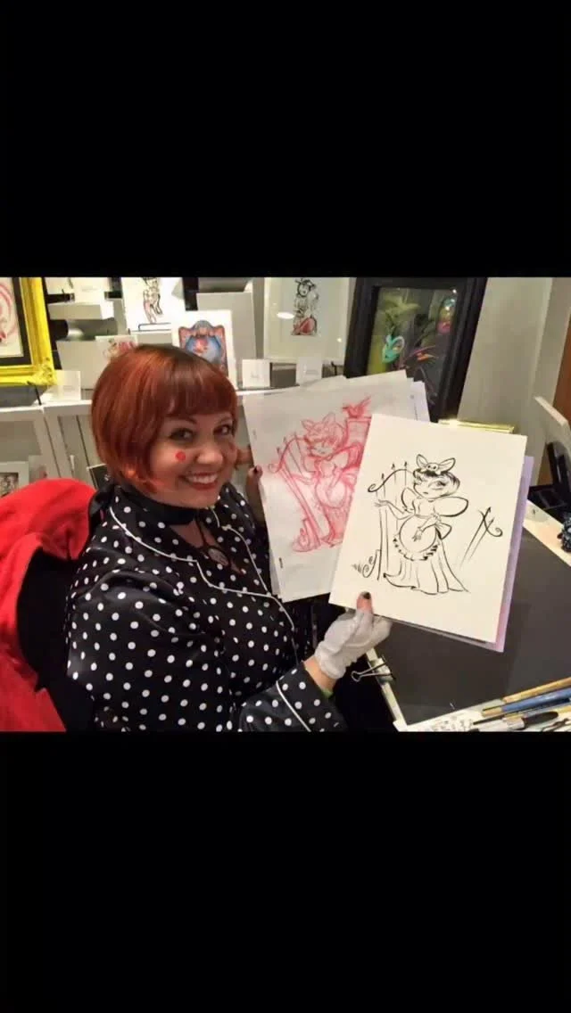 “This clip will take you on a bit of my artistic journey… Yes indeed, I’ve been a fine art and cartoonist since the late 90’s and so happy to be able to share a bit of wild wee life with you! Being a character designer in animation, a fine art painter and sculptor, and now branching out to the world stage is like a dream my dear-hearts. Merci Beaucoup to my collectors and friends all over the globe who have supported my art, been a friend when I’ve been abroad, or just came by the studio for a coffee and a chat when picking up originals. You are my sunshine and incredibly humbled and grateful I’m able to present my works near and far! I hope you enjoy a peek behind the scenes of years worth of blood, sweat, and cartoon tears. Here’s to creativity in all forms my lovelies…stay gold.” -Miss Mindy